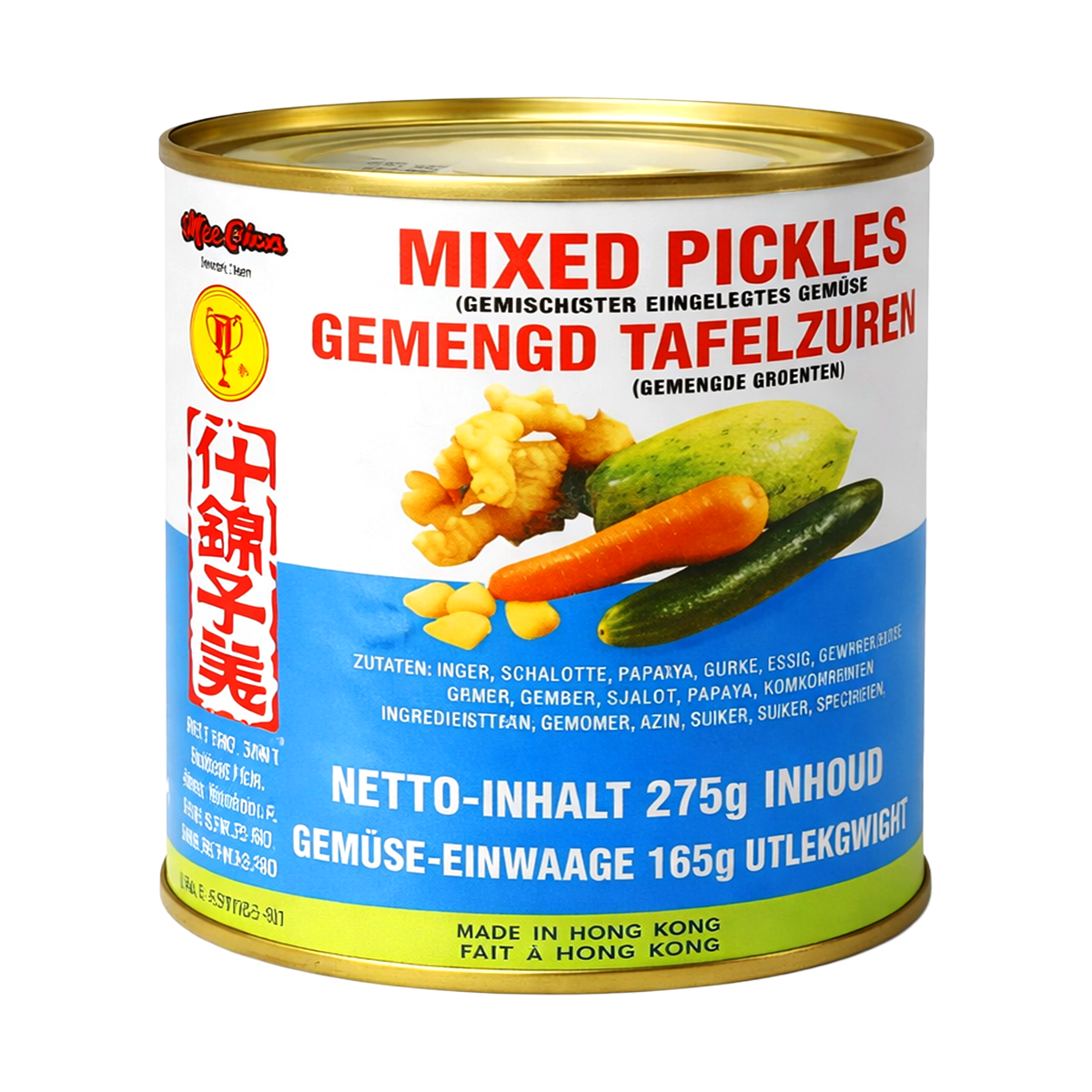 A combination of various vegetables, such as carrots, radishes, and cucumbers, fermented and pickled in a mixture of vinegar, salt, and spices. These mixed pickles have a crunchy texture and a refreshing flavor, with a good balance of sweet, sour, and salty. They are a popular addition to many Asian dishes and are often served as a side dish or as a flavorful addition to rice dishes, noodles, sushi, or sandwiches. You can eat Mee Chun Mixed Pickles straight from the package as a side dish or use them as a seasoning in various dishes. They are a convenient and versatile addition to any kitchen and can be stored in the refrigerator after opening to preserve their freshness and flavor.