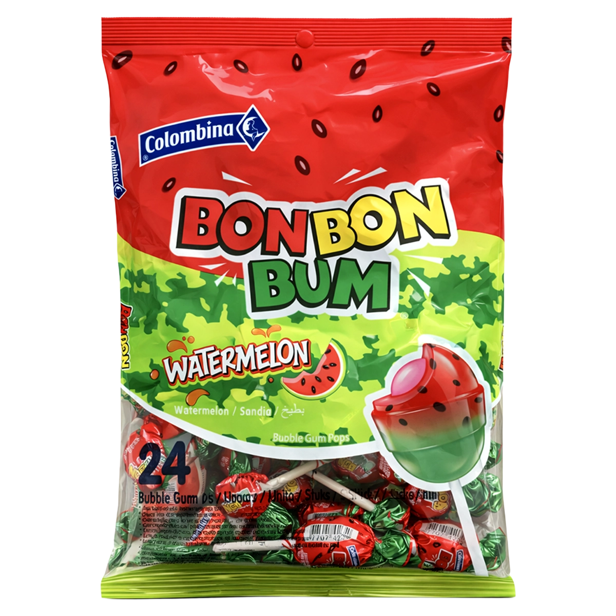 Colombina Bon Bon Bum Watermelon Bubble Gum Pops, 408g